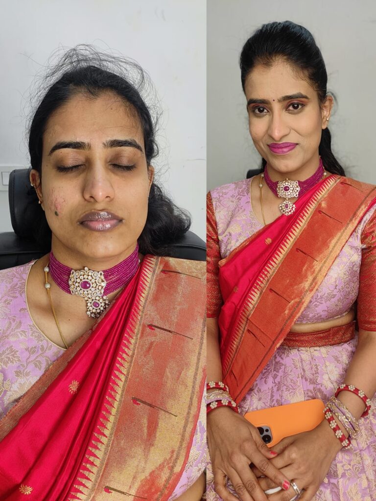 Bring your jewelry and blouse so the artist can match your look perfectly.